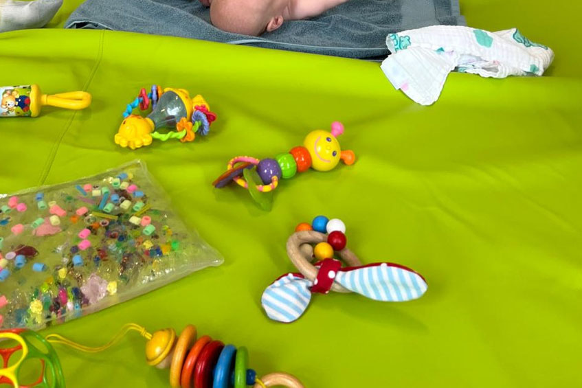 Eltern können jeden Donnerstag von 09.00–10.00 Uhr gemeinsam mit ihren Babys lernen, wie sie die Entwicklung ihrer Kinder unterstützen können.