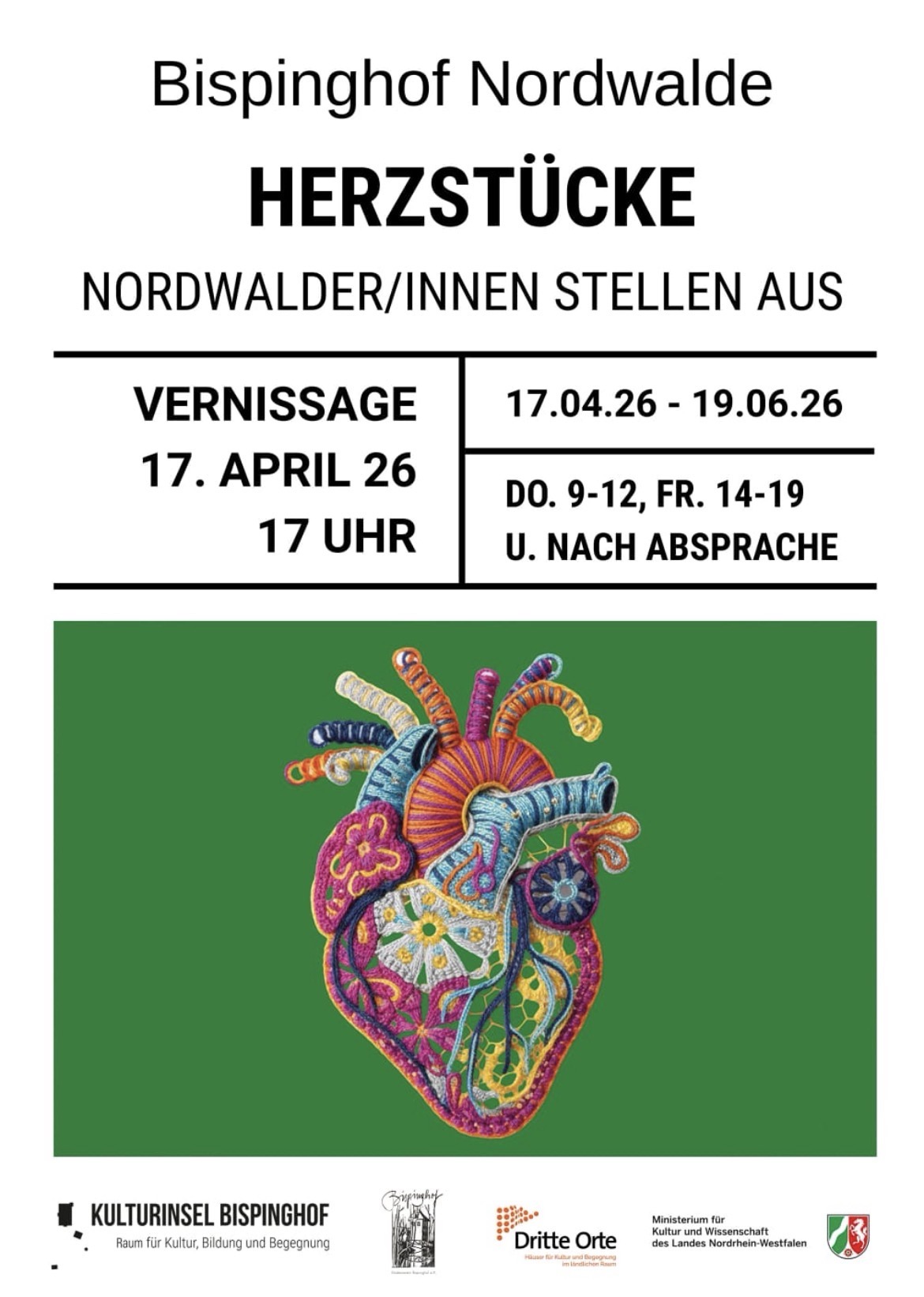 am Freitag, 17. April, startet unsere Ausstellung „Herzstücke“. In einer Vernissage um 17.00 Uhr könnt ihr die von vielen Leuten gestalteten Exponate erstmals besichtigen und bewundern.
